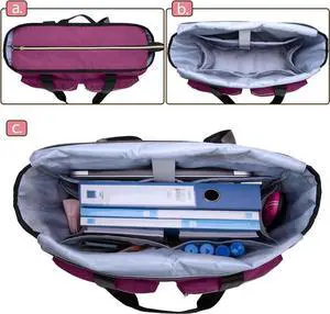Damero Teacher Tote Bag, Teacher Utility Tote Bag with Zip Top and Padded Sleeve for up to 15.6 Laptop for Work, Office, Business, Purple(Upgraded)