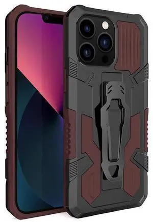 JAENFONG For iPhone 14 Machine Armor Warrior PC + TPU Phone Case brown