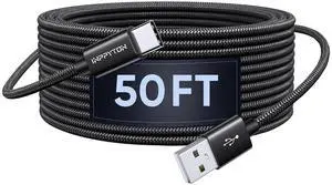INPPYTON Extra Long USB C Cable 50Ft, 50 Foot USB A 2.0 to USB Type C Charging Cord Premium Nylon Braided [NO Data] for USB-C Phone, Tablet, Galaxy, Camera, PS5, Switch & More