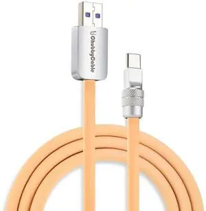 chubbycable FlexElbow Pro - 90 Degree Design 240W Fast Charge Cable Ultra-Thick Silicone Right Angle USB C Cable Phone Tablets Charging Cord, Orange, Type-C to Type-C, 16.4FT