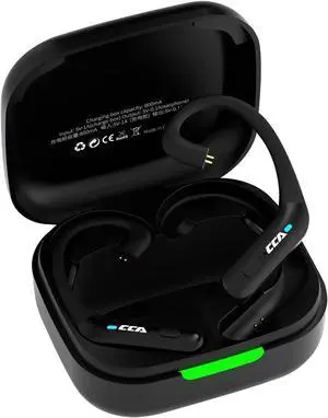 TONEMAC Q7 Wireless Open-Ear Headphones Bluetooth 5.3 Earbuds, Ultra Lightweight for Comfortable Clip On, DT 6.0 Technology for Personal Deep Bass, 34H Playtime Earphones, USB-C Quick Charge -Black