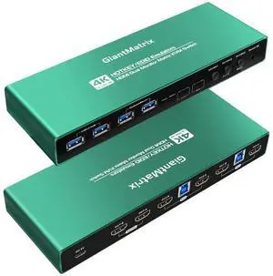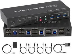 4K HDMI KVM Switch 2 Monitors 4 Computers, Dual Monitor and 2 HDMI USB 3.0 KVM Switches 4K@60Hz,Support Extended/Mirror Mode Share 3 USB 3.0 Ports with Desktop Controller, Adapter Included
