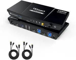 TESmart USB 3.0 HDMI KVM Switch 1 Monitor 2 Computers 4K@60Hz, L/R Audio & Microphone, 2 Port EDID Emulators, Hotkey Switching, Button Switching with Remote Switch and All Input Cables