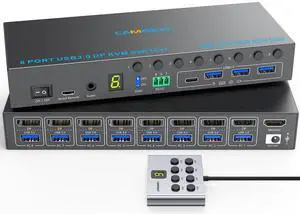 8 Port Displayport KVM Switch 4K@60Hz EDID Simulation, USB3.0 KVM Switch Displayport for 8 Computers Share 1 Monitor and 4 USB Devices,KVM Switches with Audio RS232 Wied Remote 12V Power and USB Cable