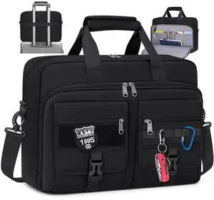 RAINSMORE Tactical Laptop Bag 15.6 Inch Laptop Briefcase Men Business Computer Bag Large Laptop Case Waterproof Military Shoulder Messenger Bag Work Office Travel, Black