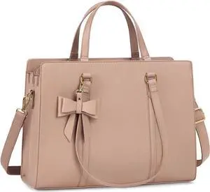 LOVEVOOK Laptop Tote Bag for Women 15.6 Inch Waterproof Leather Computer Bags Women Business Office Work Bag Briefcase Pink