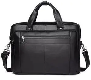 Premium Genuine Leather Laptop Messenger Bag, Office Satchel Briefcase for Men and Women (Black, 16inch)