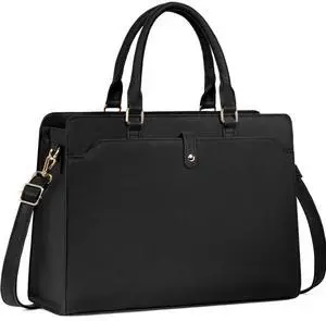 GMAK Laptop Tote Bag for Women, 15.6 Inch Leather Computer Bags Lightweight Business Office Work Briefcase Large Capacity Waterproof Handbag for Daily Commute Travel Work, Black