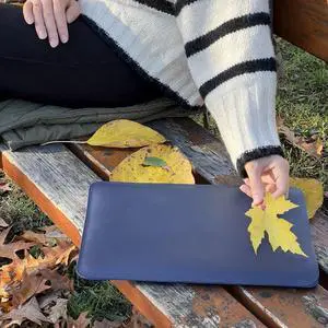 Leather Case for MacBook Air 2018-2024 M1 M2 M3 Chip Sleeve Soft Bag Handmade for 13-inch MacBook Air, MacBook Pro, Blue Vertical