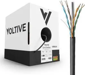 Voltive Cat6 Outdoor (CMX), 500ft, Black - UV Resistant - Solid Bare Copper Bulk Ethernet Cable - UTP - 600MHz - UL Certified & ETL Verified