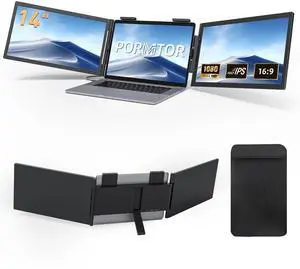 Pornitor Laptop Screen Extender, 14 FHD 1080P Triple Portable Monitor for Laptop with Ultra-Slim IPS Display, USB-C Plug and Play Multi Screen Attachment for 14"-16.5" Laptops