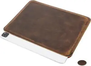CataPurus Top Grain Genuine Leather 12.9" iPad Sleeve Case, Minimalist Vintage Design, Handmade, Compatible with 12.9" iPad Pro 3/4/5/6 Gen, Fits A1876 A1865 A1983 A2014 A2229 A2232, Coffee 12.9 Inch
