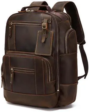 LANNSYNE Vintage Genuine Leather Backpack for men, 15.6" Laptop Backpack Travel Camping 24L Rucksack