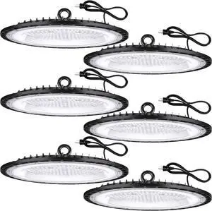 6 Pack 150W UFO Led High Bay Light 120VAC 21050LM 5000K Daylight Area Lighting IP66 Waterproof 650W MH/HPS with Plug Commercial Bay Lighting for Warehouse/Shop/Workshop/Barn/Gym/Factory