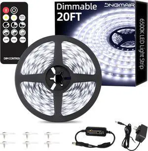 20ft LED Strip Lights with Remote 6500K Daylight White Dimmable Tape Lights 12V 360 LEDs 2835 Strong Adhesive Rope Lights for Cabinet Kitchen Ceiling Closet Vanity Mirror Stairway Basement