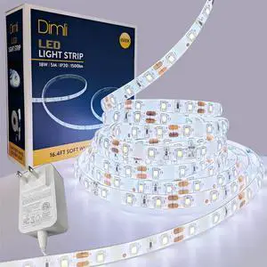 White LED Strip Lights 50ft Dimmable 24V LED Lights 6500K Bright Daylight White Strong Adhesive Flexible Tape Light for Mirror Kitchen Cabinets Bedroom