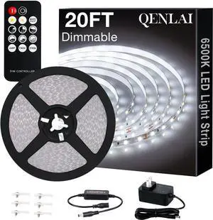 20ft White LED Strip Lights with Remote 6500K Dimmable 12V LED Light Strip 360 LEDs Flexible Cuttable Tape Lights for Bedroom Kitchen Cabinet Ceiling Lighting