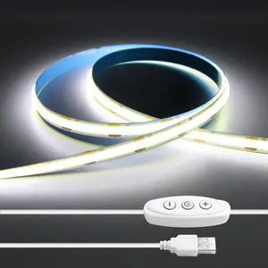 5V USB COB LED Strip Lights with Dimmable Switch Blue Light 6.56FT 320Leds/M FCOB Flexible Light Strip for Bedroom Under Cabinet Kitchen DIY TV Backlight