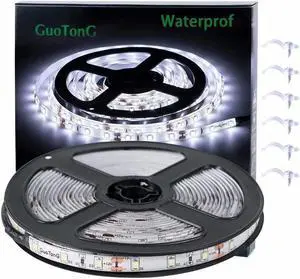 16.4ft/5m White LED Strip Lights Waterproof & Cuttable 300 SMD 2835 Tape 6000K 12V Flexible Ribbon for Kitchen Cabinet Indoor/Outdoor Lighting (No Power Supply)