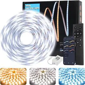White LED Strip Lights 32.8ft (1200 LEDs) Super Bright 25000K Daylight White 3Color Temperature Dimmable with Smart App & Remote Control for Bedroom Kitchen Commercial Home Lighting Decor
