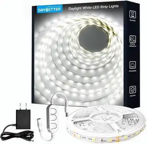 LED Strip Lights Cool White 5000K 16.4ft High Density 12V Tape Light UL-Listed 600 LEDs 300Lm/ft Flexible Dimmable Rope Lights for Bedroom Kitchen Cabinet (Power Source Not Included)