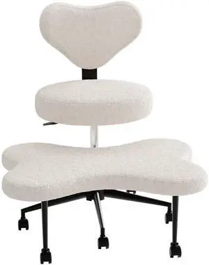 Pinmoco Ergonomic Cross Legged Swivel Chair, Adjustable Height and Teddy Fabric, Meditation& ADHD Chair with Back Support, Home and Office, Off White
