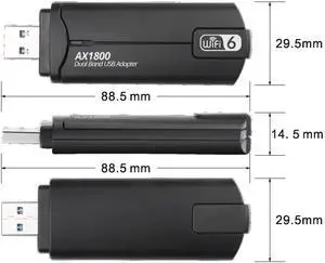 JVFYI USB 3.0 WiFi 6 Adapter - 1800Mbps Dual Band Wireless Card for Desktop PC, 5GHz/2.4GHz, Plug and Play, External Antenna