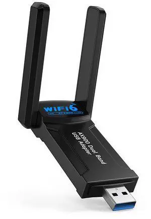 JVFYI WiFi 6 USB Wireless Adapter - 3000Mbps Tri-Band Network Card for PC Laptop, Plug and Play, External Antenna