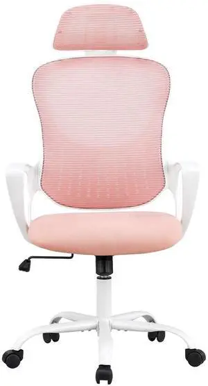 CONCETTA Ergonomic Office Chair, High Back Mesh Computer Swivel Chair with Adjustable Headrest, Pink