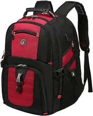 SHRRADOO Extra Large 50L Travel Laptop Backpack with USB Charging Port, College High School Backpack Airline Approved Business Work Bag Fit 17 Inch Laptops for Men Women,Red