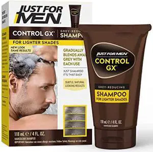 Just for Men Control GX Grey Reducing Shampoo for Lighter Shades of Hair, Blonde to Medium Brown, Gradual Hair Color, 4 Fl Oz - Pack of 1 (Packaging May Vary)