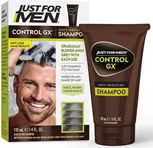 Just For Men Control GX Grey Reducing Shampoo, Gradual Hair Color for Stronger and Healthier Hair, 4 Fl Oz (Pack of 1) - Packaging May Vary
