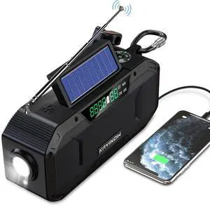KAYINOW Emergency NOAA Weather Radio, Solar Hand Crank FM AM Radio with Bluetooth Speaker, 5000mAh/18500mWh Battery Powered, Flashlight, IPX5 Waterproof, SOS Alarm for Survival Hurricane Camping