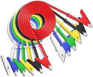 KEHIPI Multimeter Banana Plug to Crocodile Alligator Clip Test Probe, 5PC 4mm Stackable Colorful Silicone Banana Plug to Alligator Clip Test Probe Lead Wire Cable 9.8Ft/3M