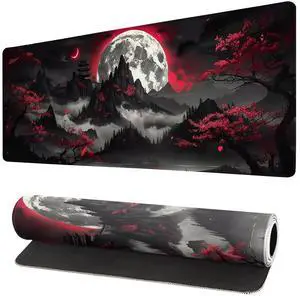 KEHIPI Darkness Red Moon Desk Mat Japanese Mouse Pad, Large Japanese Desk Mat, XL Anime Gaming Keyboard Mat, Non-Slip Rubber Base, Big Extended Desk Protector for Home Office, 31.5x11.8