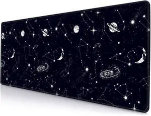 KEHIPI Large Gaming Mouse Pad with Stitched Edges, Black Constellation Desk Mat Extended Keyboard Pad, Non-Slip Rubber Base Desk Pad for Keyboard and Mouse, 31.5X11.8 inch, Sun and Moon