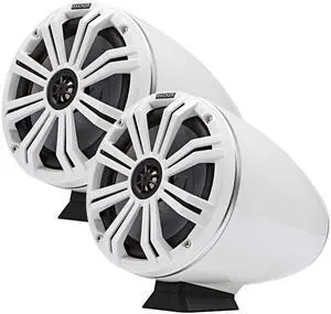KICKER KMFC8W 8" Flat Mount Loaded Marine Wake Towers with 46KM84L Speakers - White Grills and Enclosures