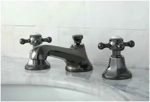 Kingston Brass NS4460BX Water Onyx widespread lavatory faucet with cross handles and brass pop up drain, Black Nickel