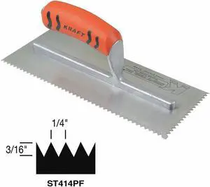 SUPERIOR TILE CUTTER AND TOOLS ST412PF Trowel,Sqr Notch,For Lrg Ceramic/Quarry