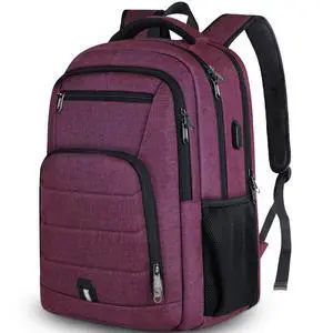 RAINSMORE Laptop Backpack 17 Inch Large Travel Backpack for Women Waterproof Computer Backpack Work Business College Bookbag TSA Friendly with USB Port, Rose Red