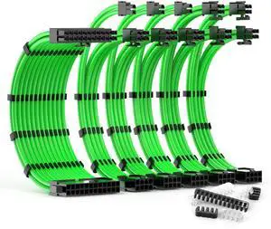 ABNO1 PSU Cable Extension Kit 30CM Length with Two Sets of Cable Combs,1x24Pin/2x8Pin(4+4)/3x8Pin(6P+2P) PC Sleeved Cable for ATX Power Supply (Green)