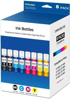 PFXNJDEQ Compatible for E-pson EPT522 Ink Refill Bottle 8-Pack ET-2800 ET-4800 ET-2400 Ink Refill Bottles for Eco Tank ET-2800 ET-4800 ET-2400 ET-2803 ET-2720 ET-4700 ET-4810 ET-2840 Printer