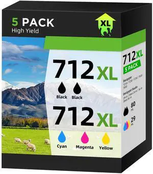 belietop 712XL Ink Cartridges High Yield Compatible Replacement for HP 712XL 712 XL 712 Ink Cartridges Combo Pack for HP DesignJet T210 T630 T650 T250 T230 Printer (5 Pack, 2BK/1C/1M/1Y)
