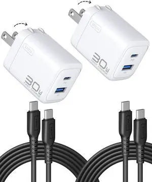 INIU USB C Charger Block, 30W 2-Pack PD Fast Charging, [USBC + USBA] iPhone 17 Charger with Foldable Plug, GaN Tech Type C Power Adapter for iPhone 17 16 Pro Max, iPad Air, Samsung S25 24 Ultra, White