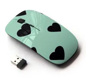 KawaiiMouse [ Optical 2.4G Wireless Mouse ] Heart Teal Mint Green Black Pattern