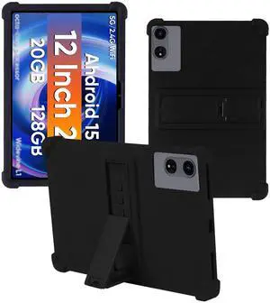 Case for HNVHNV E50 Android 15 Tablet 12 inch TableWUNIAK Shock Proof Lightweight Stand Rubber Shell Protective Cover,Kids Friendly Soft Silicone Adjustable Stand Cover,Black