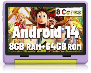 Jeazans Kids TabletUpgraded Android 14 Tablet 10 inch for Kids with Protective CaseOcta-Core64GB1TB TF Card ExpandableDual CameraParental ControlGreat Gift for Toddler(Purple)