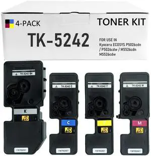 YeaImage TK5242 Compatible kyocera m5526cdw Toner for Kyocera ECOSYS M5526cdw, ECOSYS P5026cdw, M5526cdn, P5026cdn Toner (Compatible Kyocera TK-5242 TK5242K TK5242C TK5242M TK5242Y, 4 Pack, BK/C/M/Y)