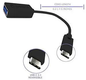 USB C 3.1 Adapter - Short Black - USB Adapter For New Macbook & Chrome Pixel From NFCGuyz- 7.5 INCH - USB 3.1 Type C Highest Speed 10Gbps & 100W Power - BLACK