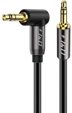 3.5mm Stereo Audio Aux Jack to Jack Gold Plated Cable 90 Degree Right Angle Compatible for iPhone Galaxy Speakers or All Other Devices 12 Feet